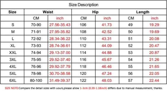 Velikost kraťasů: