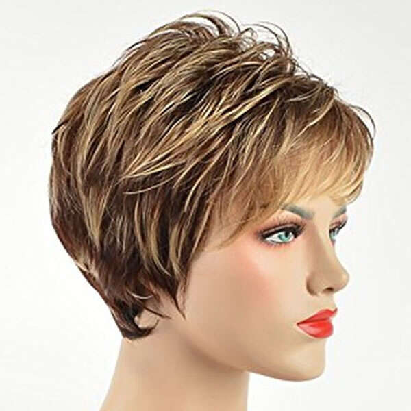 Hnědá barva paruky v kombinaci se světlejšími prameny je atraktivní a vhodná k nošení při všech příležitostech. Vlasy se nebudou vrásčit, vypadávat, měnit hebkost ani barvu.